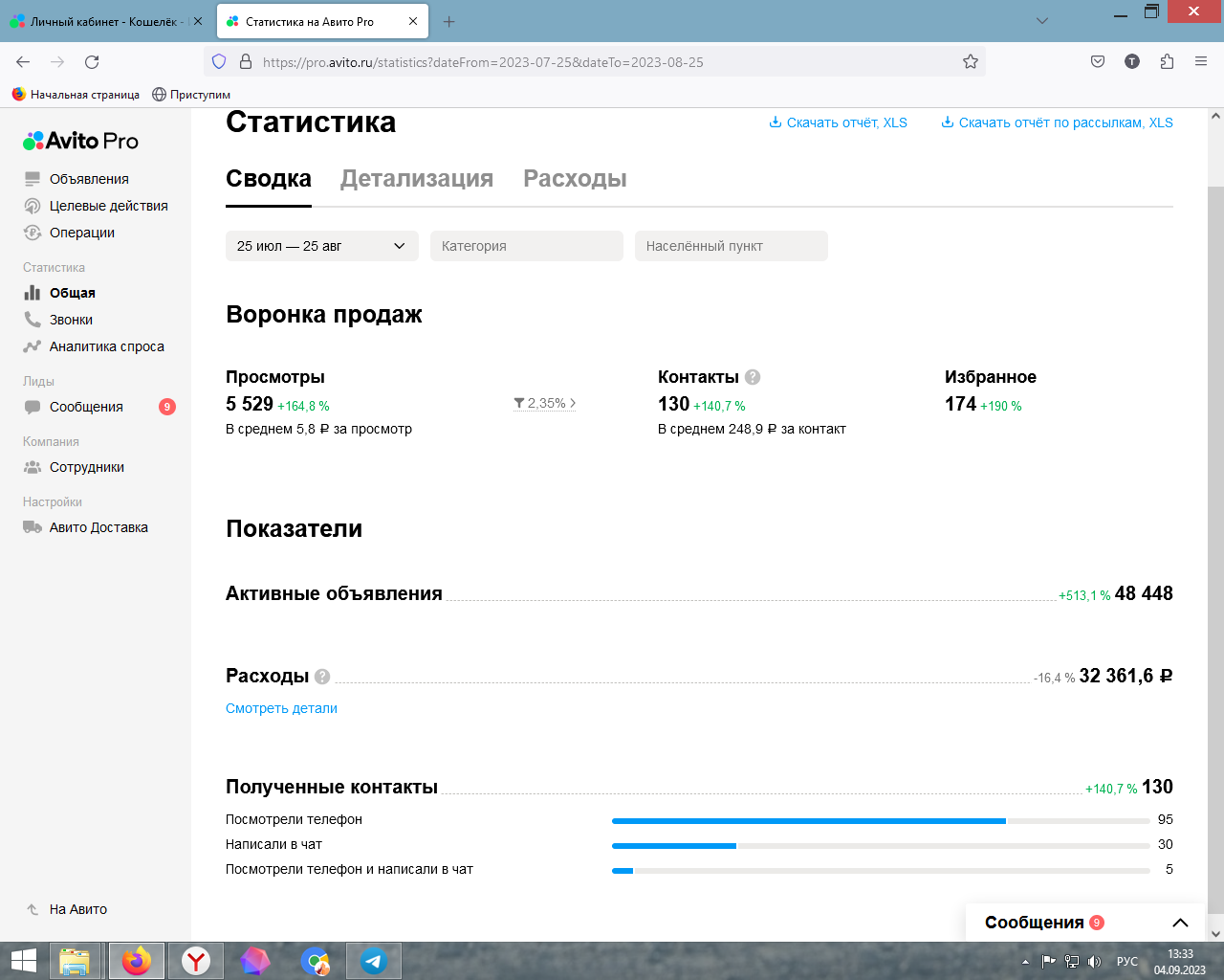 - Автоматизация: через Excel-шаблоны и автозагрузку Avito выгрузили 48 448 объявлений (см. скриншот). Это позволило покрыть огромное количество поисковых запросов.